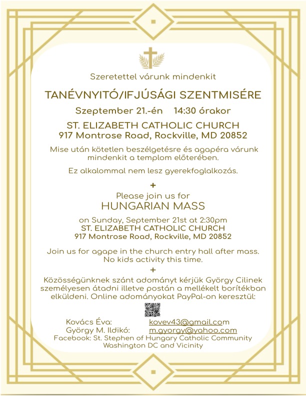 TANÉVNYITÓ/IFJÚSÁGI SZENTMISE September 21.-én